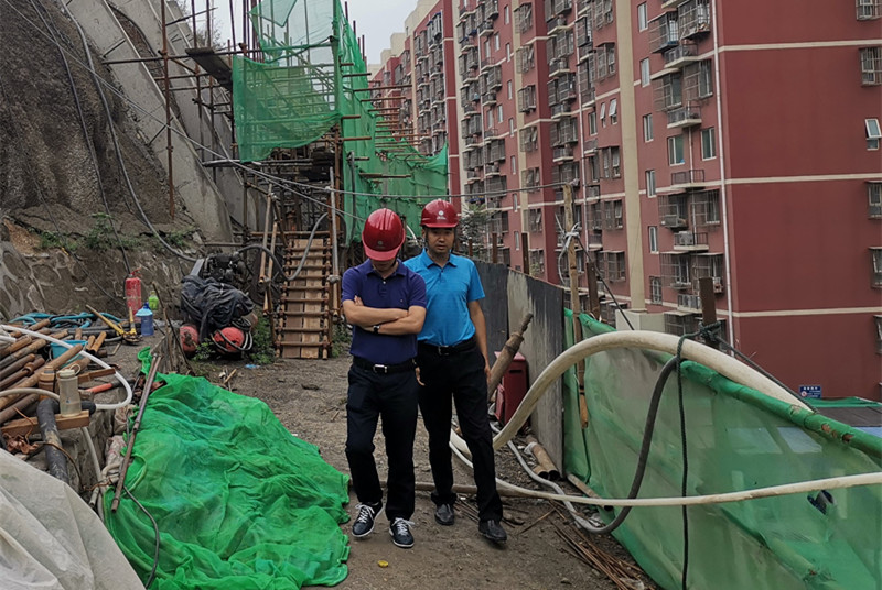 2019年5月1日完成人、材、机进场,立即为坡底居民搭建安全通道,保障居民出行安全。因为场地狭小,高度大等问题制约无法机械施工,在保障安全的前提下采用人工对山体滑落土石方进行清理。所有物资及施工材料采用人工运输,为了提高指挥效率,住总市政道桥部穆维民青年突击队把抢险指挥部设在了山坡现场一处平台上,每名成员都能按照各自的工作职责恪尽职守的完成工作任务,即使是现场环境的险杂、依旧保质保量完成每天的工作量。高温、倾盆大雨期间,各个值守点都有住总市政道桥部穆维民青年突击队的队员,他们没有一句怨言,有的只是对工作的尽职,对危险的防控、对居民生命安全的责任。